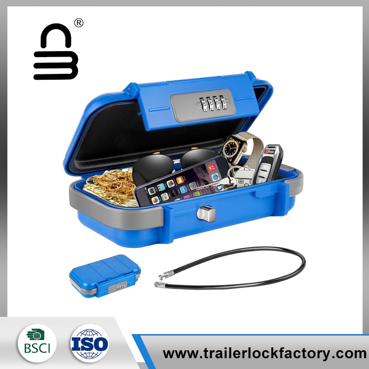 Beach Sports Lock Box er lavet af robust ABS-materiale, skallen er meget stærk, stødbestandig, vandtæt, hvilket giver dig langvarig beskyttelse. Indersiden af strandlåsen har en EVA-foring med høj densitet, der beskytter eventuelle værdigenstande mod skader