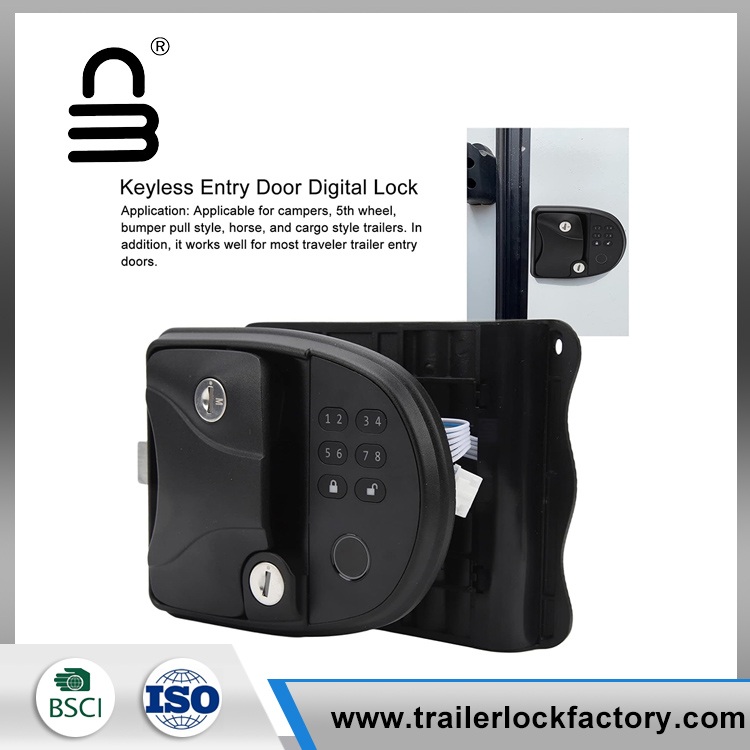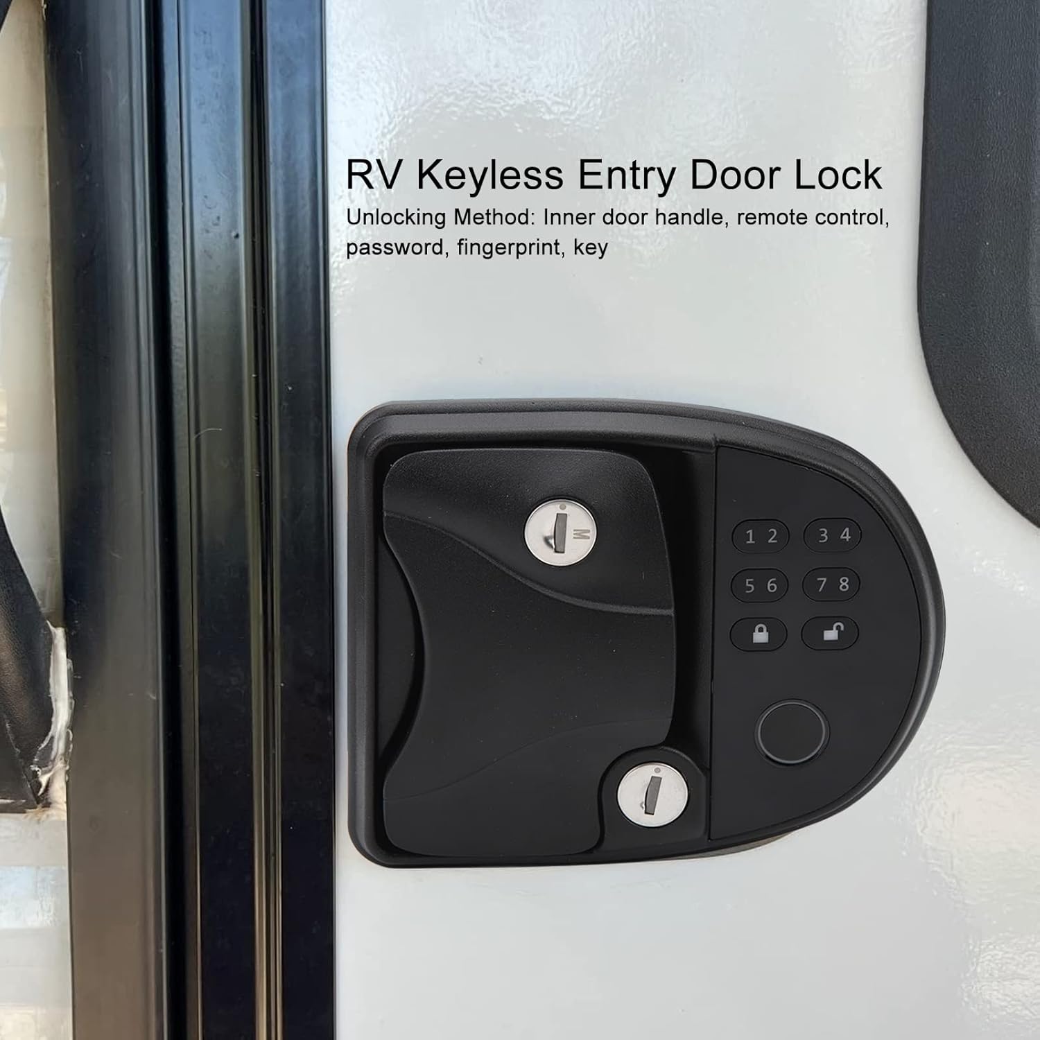 Fingeraftryk RV -dørlåsen har integreret adgangskodetastatur) Integreret tastatur er designet til at vælge mellem over 1 million rulle -koder (inkluderer nøglefri håndtag, fingeraftrykslås og mekanisk nøgle) aldrig bekymre dig om at glemme eller miste nøgler) og fjernbetjening