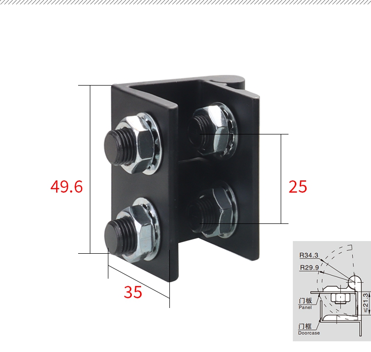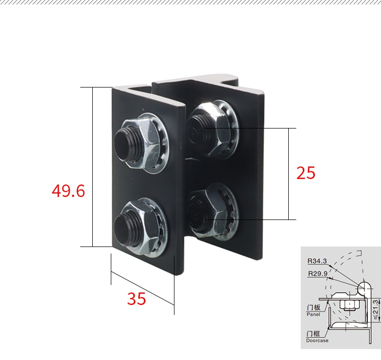 Glasshængslet er designet med et perforeringsfrie U -formklip. Spænd ikke skruerne for hårdt til at forårsage klammenden af det udvidede glas til at gå i stykker.