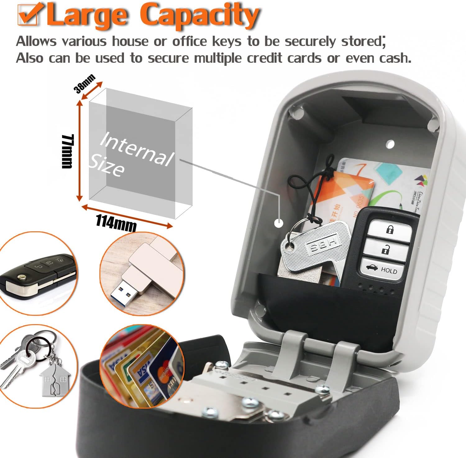 Key Safe Box Code Lock - Med en stor opbevaringsplads (intern størrelse: 114*77,4*38mm), ville denne nøglelåskasse opbevare flere taster eller adgangskort ved din dør sikkert, ideel til nødindgang, heal health care adgang, feriehuse, kæledyrsittere, airbnb huslejer osv.