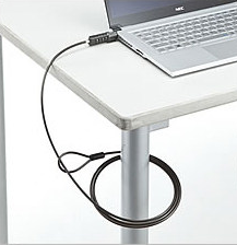 1 Pakk kablet rundt om foden af bordet og før det gennem kombinationslåsen.