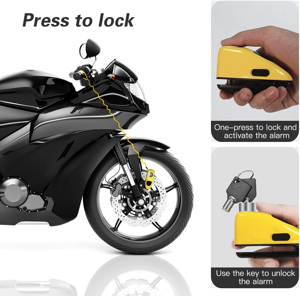 · Alarm med høj decibel: Motorcykelalarm Bremseskive Lås Sensoralarm registrerer påvirkning og bevægelse, hvilket sikrer sikkerheden på din motorcykel. Alarmklassen på 110 dB kan udsende en høj alarmlyd.