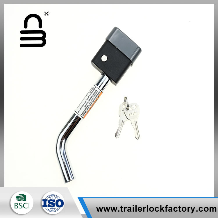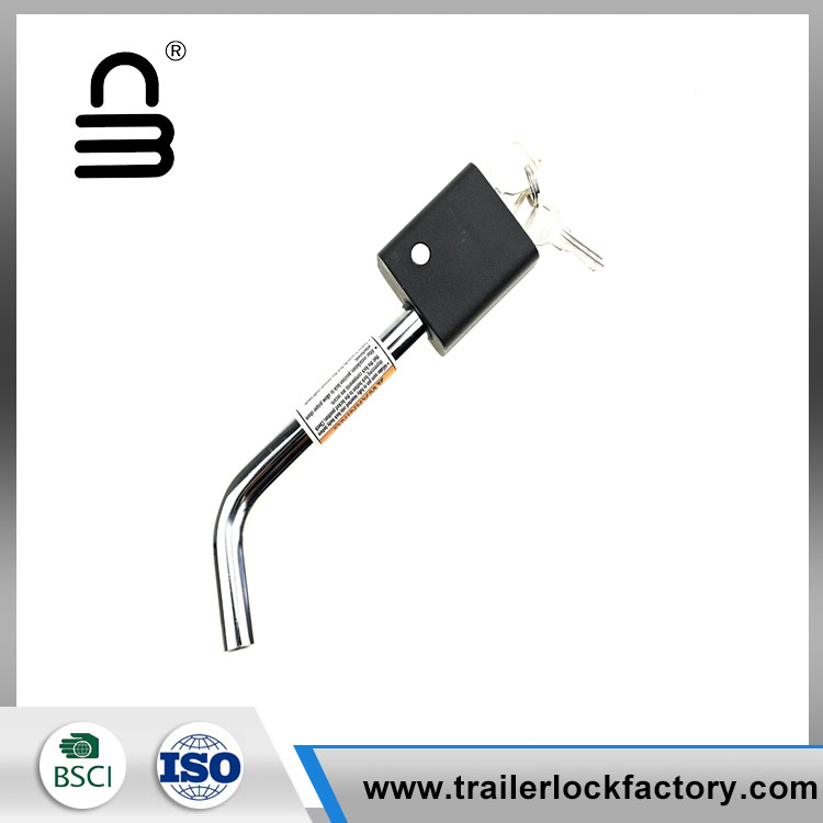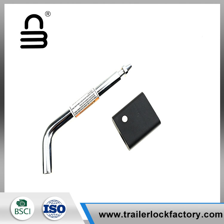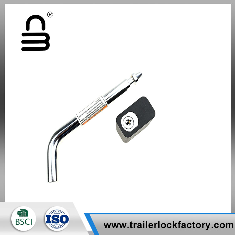 Denne 5/8 "bøjede pin-hitch-lås designet til afskrækkelse af tyveri, når du trækker dit køretøj. Denne bøjede pin-hitch-lås har krombelagt finish og kom med træknøgler og en låsekappe. Bøjet håndtag, hvilket gør dem let betjening, når du monterer din kuglemontering. However 5/8" Hitch Lock vil passe til en kuglebeslag eller trailerhitch med en 2 "diameter skaft.