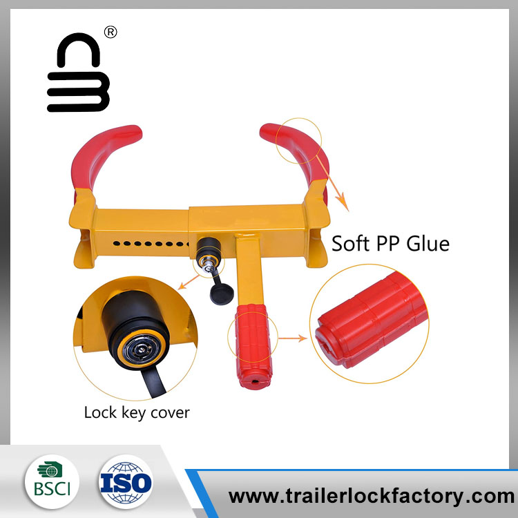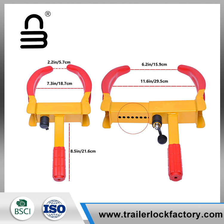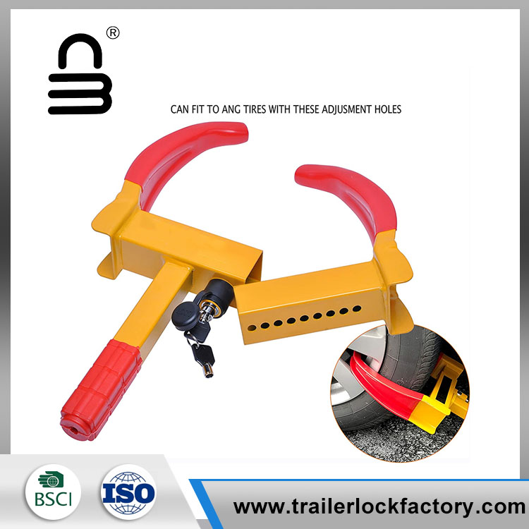 Justerbart dæk anti-tyveri lås design, trailer hjulet har ni huller, og det kan flytte størrelsen base på dækstørrelsen. Sikkerhedsdækklemmen vikler sikkert omkring dit hjul og forhindrer tyveriforsøg, bugsering eller rod med køretøjet.